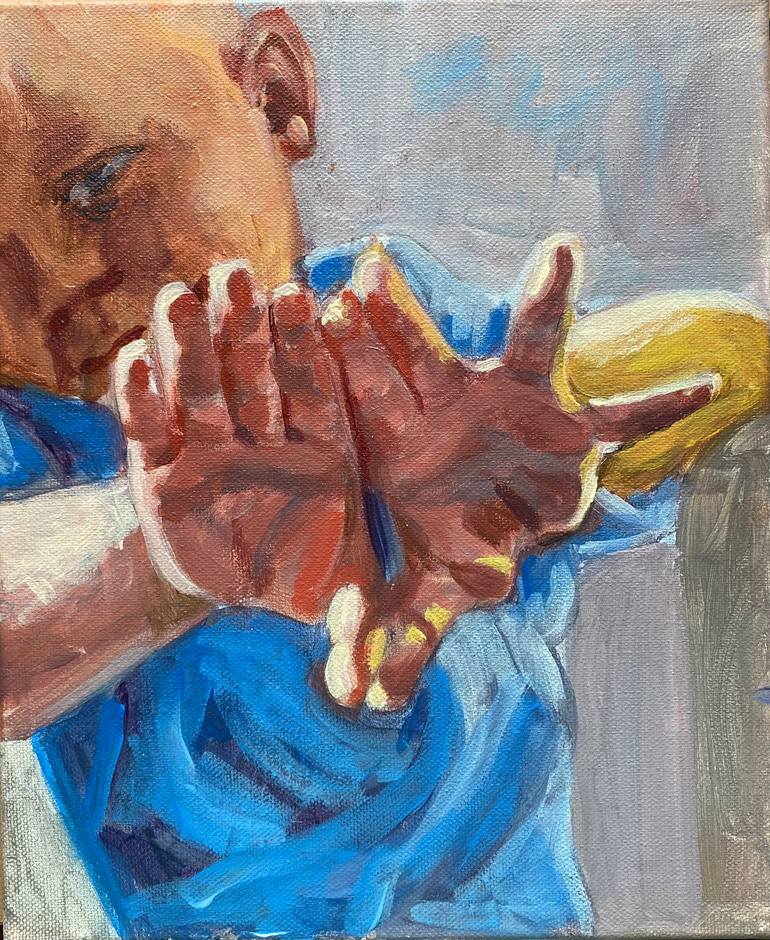 I asked my son to pose to me for my reference photo and i didn’t know the sun will apear this good on his hands. I want people to see the moment bearly catchable. This moment wont be lost in time. Acrylic on canvas.