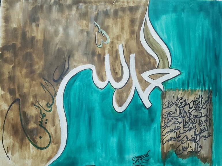 Is a,calligraphy painting on canvas with oil paints..sura e fateha
