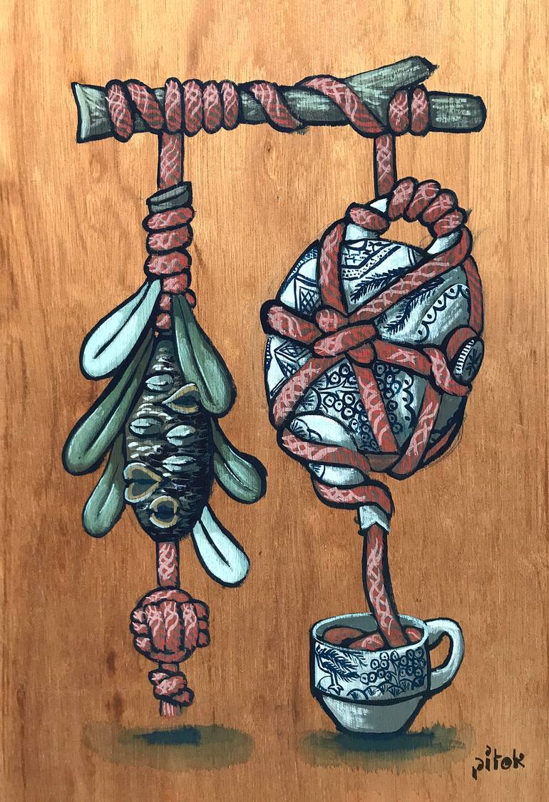 Pitok is a visual artist based in Sydney’s inner west. Having graduated from UNSW Art & Design (formerly the College of Fine Arts, Sydney), he has worked as a Visual Designer and Art Director commercially for the last 20 years. Since 2015 he has been creating personal painted works using gouache. Pitok utilises still life scenes, as a means of enshrining personal objects. These objects are totems that tie us to a time and place. A memory, a person, an experience, a moment we cannot return to that has passed. These still life scenes represent the spaces we construct around us as an extension of our identity. Drawing from the traditions of modernist painters such as Margaret Preston, and ukiyo-e woodblock prints, his works are an exploration of self-identity, a connection with the natural world, and an investigation into Australian and Japanese culture. Pitok works in a studio space at Monster Mouse Studios, an artist collective in Marrickville, Sydney.