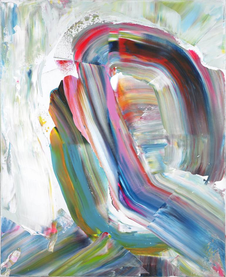 Norwegian abstract artist Marit Geraldine Bostad takes viewers on a journey to inner realms, erasing the line between the conscious and the subconscious. Drawing inspiration from psychology, her canvases become tangible manifestations of her psyche and present a way to disconnect from an externally controlled world through pure abstraction. Breaking away from the constraints of imposed themes and values in figurative representation, Geraldine describes universal archetypes that transcend the particular conditions of her personal life. This sets the scene for the audience to bring their meaning to her work. Geraldine’s technique involves the direct application of acrylic paint, using tools that seldom include a paintbrush. By combining tone tone-to-tone pastels with sparks of fluorescence, the artist carves out a distinctive approach to traditional Nordic Colour Theory. Marit Geraldine originally was an Art Director, with 10 years of experience working on visual projects in film, illustration and concept building in Oslo. Alongside her commercial work, she has practised painting, as a way to release and unwind. In 2009 Geraldine left her career in Art Direction to pursue her painting full-time. She has exhibited her work in Oslo, Dubai, London, New York and LA - and has received substantial acclaim from curators as well as galleries throughout Europe and the US, for her vibrant, strong and contemporary abstract paintings. In April 2017 Rebecca Wilson, Chief Curator and VP, Art Advisory at Saatchi Art picked Marit Geraldine as one of her "4 Must-See Artists" at TOAF London, out of 130 emerging artists. In 2020 Marit Geraldine was honoured to be among the 30 shortlisted artists chosen for the Ashurst Emerging Artist’s Prize in London. In May 2022, Geraldine was the face of the Affordable Art Fair Hampstead fair campaign, which could be seen all over London. She continues to work with galleries and institutions in London, New York, Dubai and Paris. In Norway, the artist recently had three major solo shows with KHÅK Kunsthall and Gulden Kunstverk (2021-2023) ARTIST STATEMENT: Through a series of paintings, Marit Geraldine Bostad investigates the themes central to her artistic research, the inner psyche, memories and human interaction. She blends her colours by pouring paint directly onto the canvas using various tools, seldom using the paintbrush - to create diverse, versatile effects with broad expressive strokes.