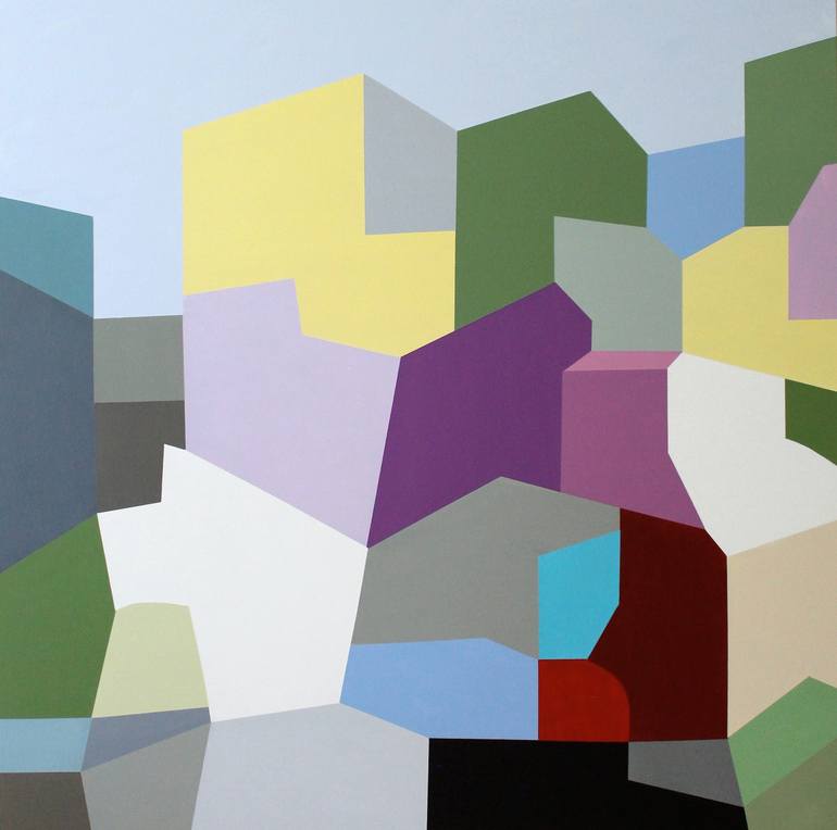 This is an original abstract landscape painting. This Large 36" x 36" painting is on 1.5 inches deep gallery wrapped canvas. The sides are painted white and it will be shipped stretched and ready to hang.