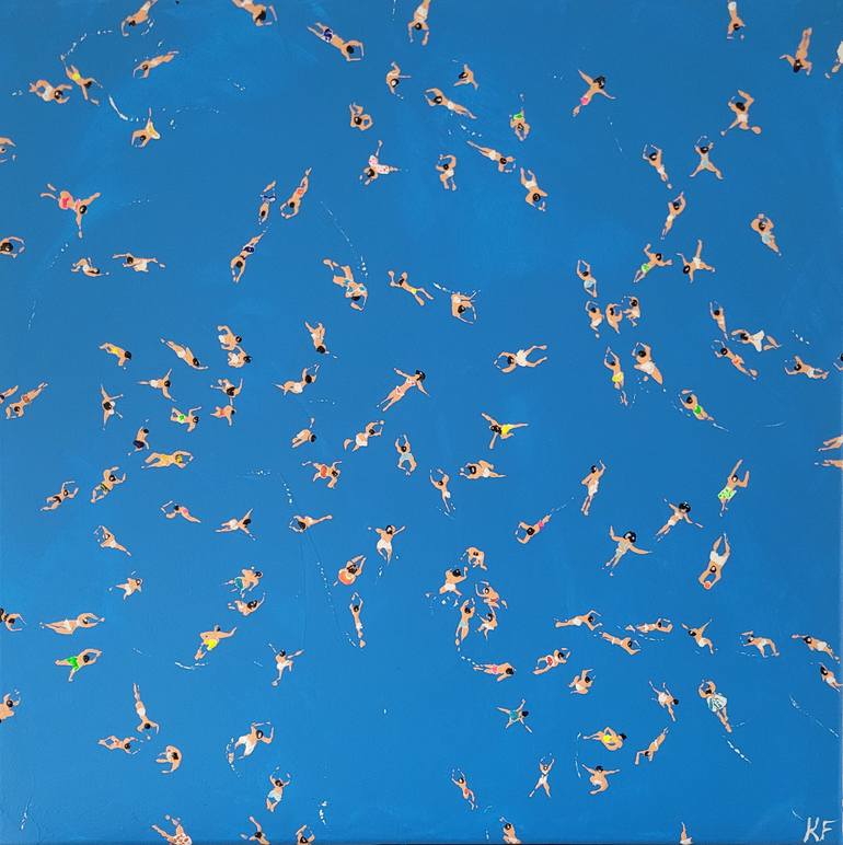 People swimming in the blue sea - a modern, semi-abstract, cheerful painting that many of us have in mind when we think of summer and holidays. Or also an allegory for life: Everyone is looking for their own way in the waves, but basically we are all more similar than we would like to admit and are...