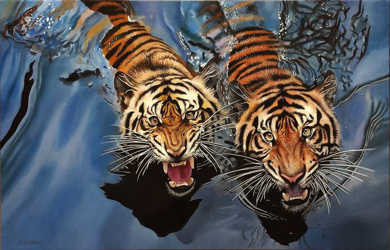 Tiger painting, Animal Painting, Wild Cat, Canvas Painting, Wild animal, Original and Handmade Art, Certificate Attached , 60 x 90 cm - Ready for hanging, without external frame. − HAND-PAINTED: All paintings in the store are hand-painted. They are NOT computerized or poster prints. -Style : Hyperr...