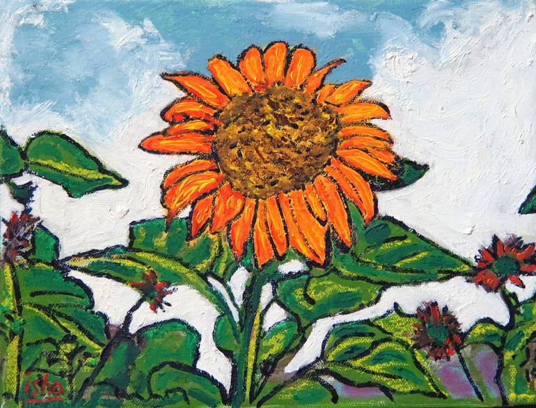 A sunflower in the high country of Switzerland. I love it there in the high country. The light changes so fast. Too bad about the Winters and the snow. I like it here in the tropics with no cold. Nice for a visit though. This is an oil painting on canvas museum wrapped with the edges painted black ...