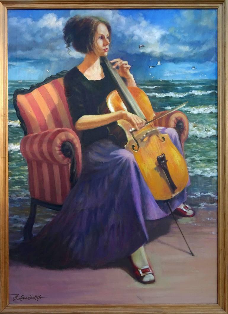 Music can be so exciting and thrilling that it is reminiscent of the forces of nature. I painted my daughter when she was obsessed with playing the cello.