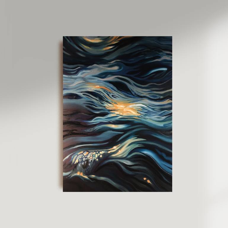I love water and how it flows. It was my inspiration for this work. Water is a relentlessly beautiful, powerful and unpredictable material. I used a photograph of the ocean in an evening setting as my reference and then abstracted it in my own style to mimic how it makes me feel to be near the oce...