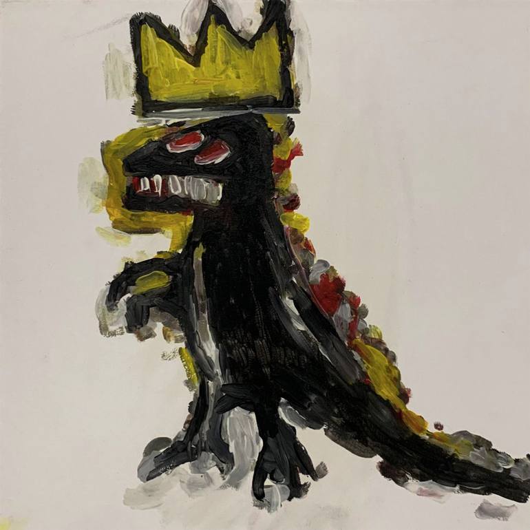 This is a reproduction of Jean-Michel Basquiat's famous Pez dispenser artwork created by a robot artist. The painting features bold, gestural strokes that capture the energy and spirit of Basquiat's iconic style. The robot artist has reproduced the painting with impressive accuracy, using precise m...