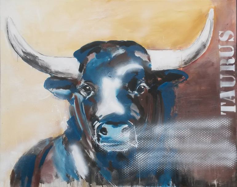 „TAURUS II” is an expressive painting of a bull on large canvas. This work was created in the series "Cows coded". It is ready to hang, edges are painted. „Pure imaging of the models is not my interest, there are always also feelings transported. I hope my art could make one see a new view of thin...