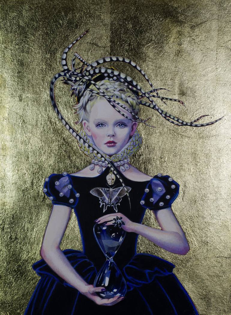 Titti Garelli was born in Turin, where she lives and works. Her art revives the Gothic feel of pre-Renaissance Italian Art and reintroduces ancient cultural dialogues through the splendor and opulence of the European royal courts. Titti Garelli artistic careers marked by her long experience as an illustrator which had made her one of the most prominent figures in many well-known advertising campaigns in the last decades.