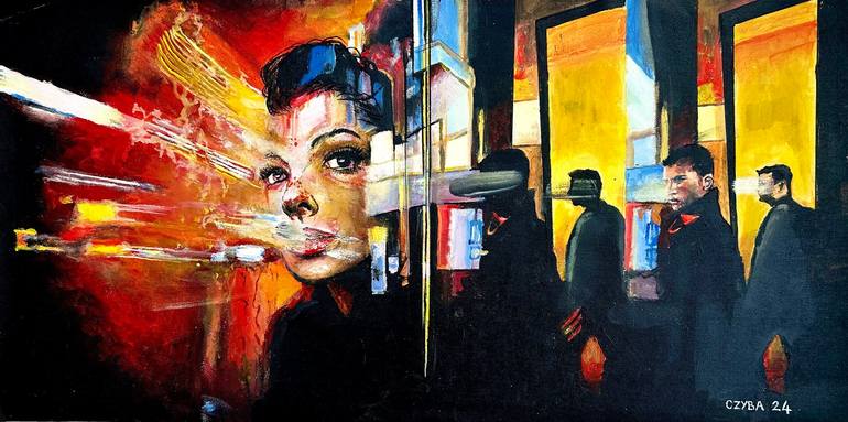 "THE ABSENCE OF DREAMS" is an original acrylic painting on canvas that explores the contrast of conflicting emotions. In this figurative expressionist piece, a woman's portrait is superimposed on an urban scene. This superimposition represents aspects of reality through reflections and windows, crea...