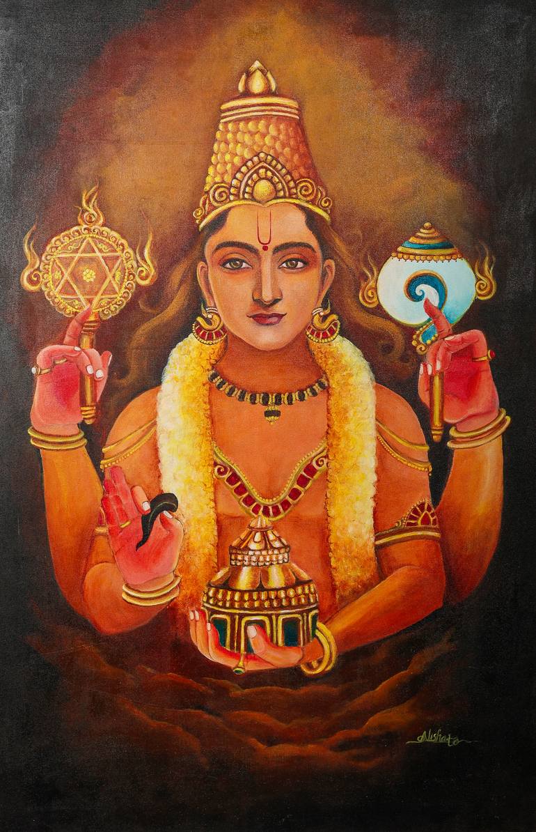 Lord Dhanuanthari considered the God of Medicine and Health. He's often depicted as a manifestation of Lord Vishnu. Dhanvantari is credited with propagating Ayurveda, the ancient Indian system of medicine. He's revered for his healing powers and ability to cure ailments.Dhanvantari's worship is beli...