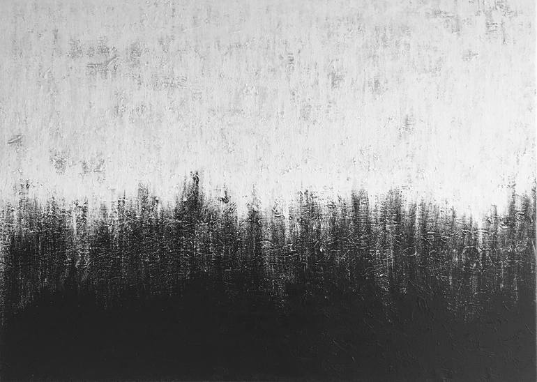 This piece reflects at least two point of views. The inspiration revolves around the instabilities of emotions and the constant shifts and changes of happy pleasurable feelings fading to sad dark feelings. In the top white (happy) portion of the piece there's variations of grey fading through the wh...