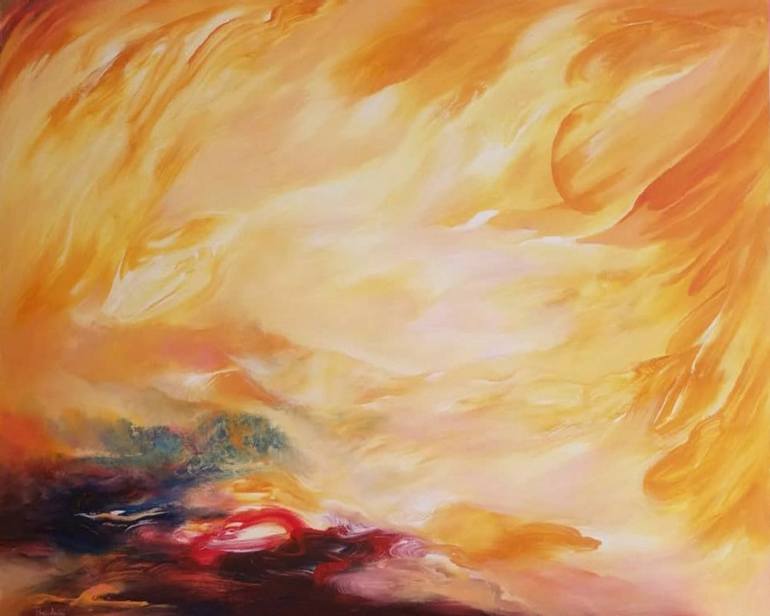 THE FUTURE IS BRIGHT ! Original painting, acrylic on canvas, brush painting. Inspiration is derived from the bright Summer Sun. Its very evident that with all the brilliant splash, the sun manifests hope, love, energy and the drive to focus on a bright future. The bright yellows and oranges and br...