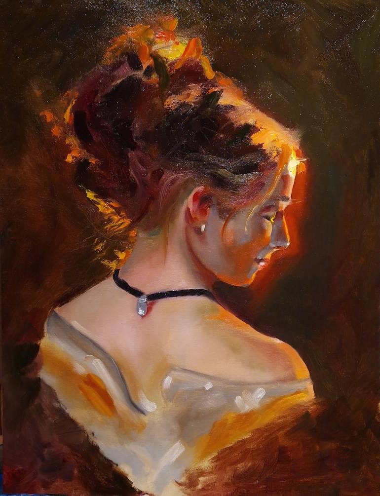 This piece was inspired by the quiet elegance and inner strength found in moments of solitude. The play of light and shadow was crafted to evoke a sense of warmth, inviting viewers into a world of introspection and serenity. The subject, turned slightly away, embodies a delicate balance between vuln...
