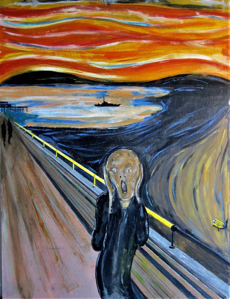 This is obviously a take on Munch's 'The Scream'. I live on the East Kent coast, 8 miles from Dover in a town called Deal. While on Deal pier I overheard an extremely ugly conversation regarding migrants. A few have made it across the channel recently, and the reaction by certain members of the co...