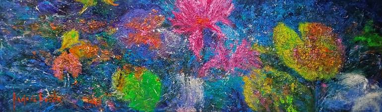 In this work, I capture the effervescence and vitality of an ephemeral pond, filled with water lilies. I used acrylics and gold to infuse light and a halo of mysticism, blending Impressionism with Expressionism to evoke the sensation of a palpable dream. This painting is not just a vision of nature,...