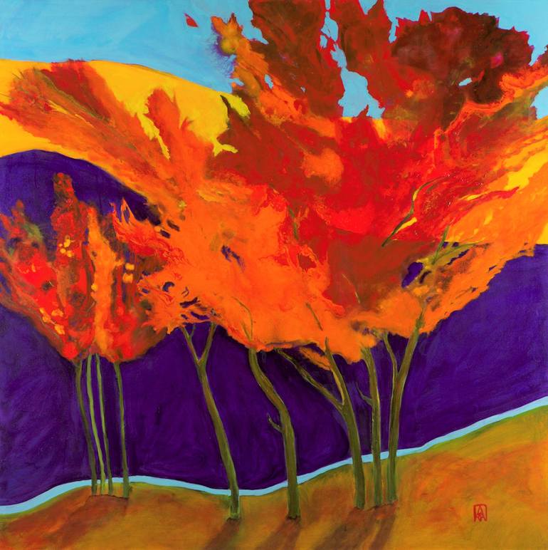 Mixing and pouring the oil paint, tilting the canvas, and allowing the paint to flow leads to a convergence of color and shape. The paint requires time to dry between sessions, and sometimes I return to find it has further developed on its own, and I incorporate these happenings into the completed ...