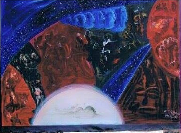 This painting was created in the year 2009 and it took 1 and half month to complete this painting.The artist was so impressed by the universe so he usedhis imagination to make the same human art on the painting. In this he has used the navy blue colour to make the galaxy and in this with the use of ...