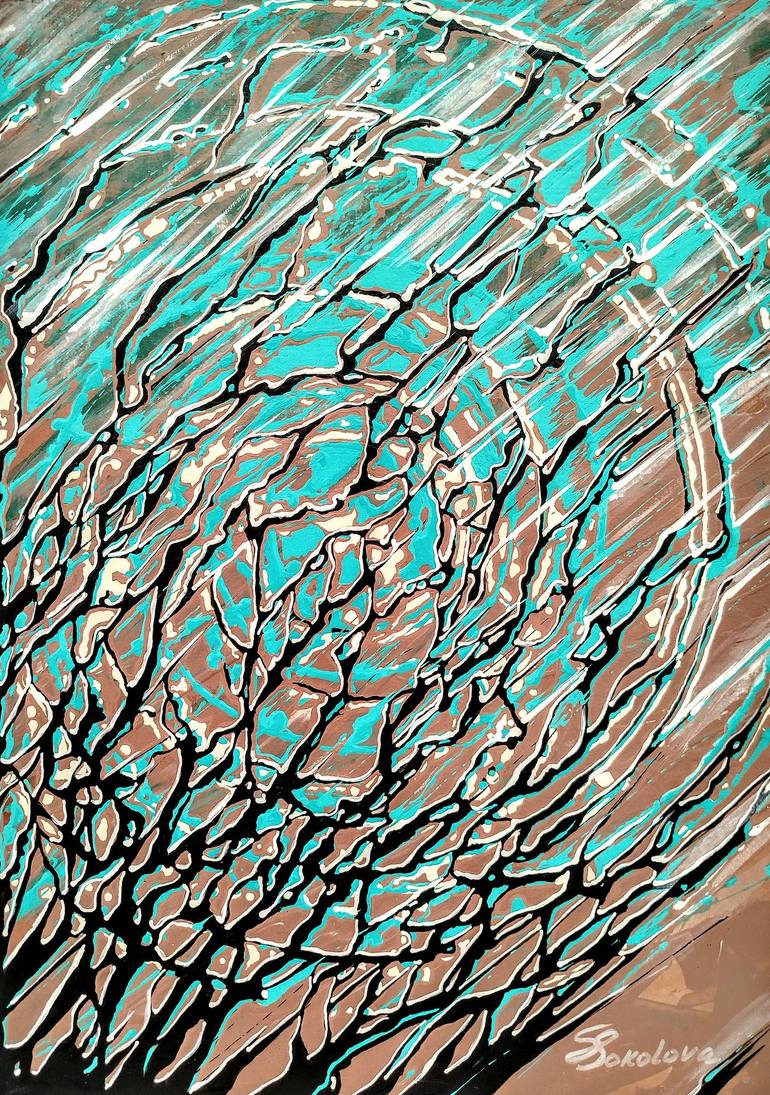 When I pick up my paints, I rarely know what the end result will be. This painting is a living example of how the process leads itself, not the other way around. Each line is not just a brushstroke, but a small river that has found its course on the canvas. I love this play of chance and control, wh...