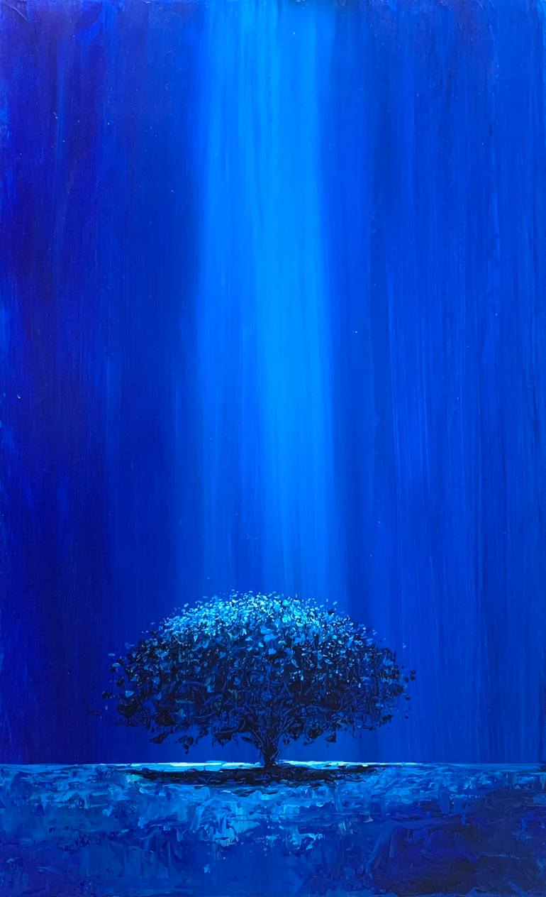 TOUCHED BY THE BLUE (OR BLUE LIGHTFALL) is a painting made with acrylic colors painted on wood, not framed but ready to hang. It belongs to the series dedicated to trees and nature. Representing trees in this unique and original way took place in my mind a few years ago and to me it is a way to cele...