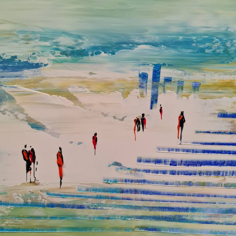 DETAILS OF THE ARTWORK ON YOUTUBE : https://www.youtube.com/watch?v=V0V-Uq18s10 Abstract landscape, the silhouettes give to the artwork a figurative and human touch. acrylic on canvas XL (100/150 CMS) painted with palette knives, edges painted in black, high quality varnish, ready to hang. signa...