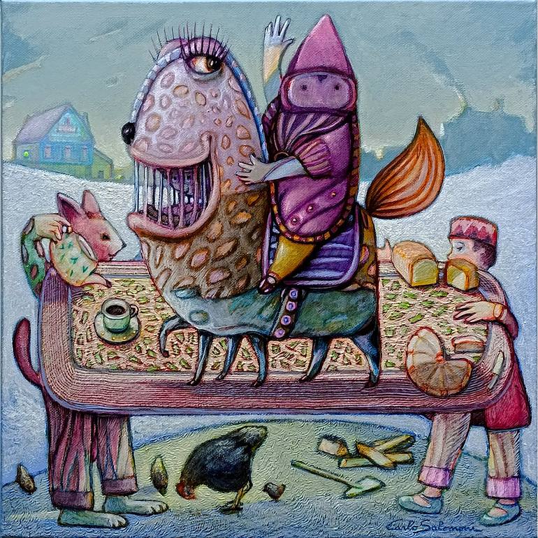 Carlo Salomoni loves dreaming in the daylight, giving life to a surrealism that brings a smile to your face that, just like a medicine, helps us forget the bad in the world. His paints have origin in metaphysical and surrealism, in the art fantasy and the magic realism, his paints and illustrations invoke a world of dreams and ambiances where reality and fantasy are melted and collide beautifully. Carlo Salomoni is an Italian artist born December 2 1956 in Ferrara, Italy. He is a graduate from the medical faculty with a degree in general surgery, but in 1992 decides to leave the medical activity and becomes a professional artist. Carlo realizes mixed techniques and acrylics over fabric, paper, clay, Chinese ink designs, inks, color pencils, graphite over paper. Thanks to his inexhaustible creativity and fantasy, creating cycles of different masterpieces, with the guaranty of originality in every and each of his artistic works. Lives in Ferrara Italy, with his wife Angela Teresa Lopez – author of tales, poetry and romances and source of inspiration for Carlo. Carlo Salomoni is a full time professional artist.