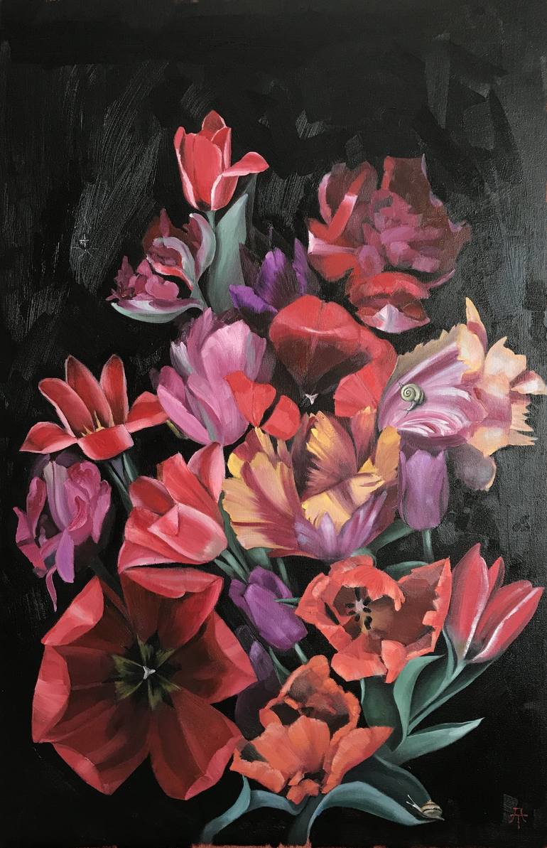 Original Oil Painting on canvas 'TULIPS' • Artist - Anastasia Terskih • Comes with a certificate of authenticity • Unframed Height: 90 cm / 35.4 inches Length: 60 cm / 23.6 inches