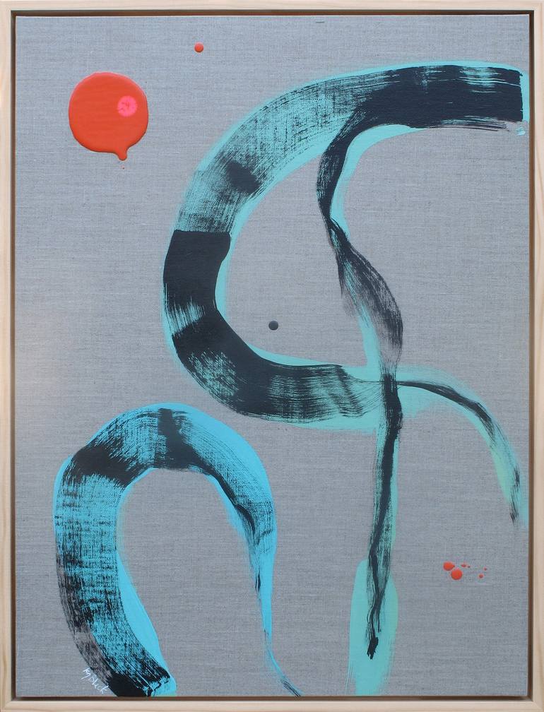 Painted on linen with a natural wood frame Tabby Cat Stalk uses minimal colour with gestural colour, purposefully leaving much of the linen on view. Pairs beautifully with Pussy Cat Prowl. Ready to hang.