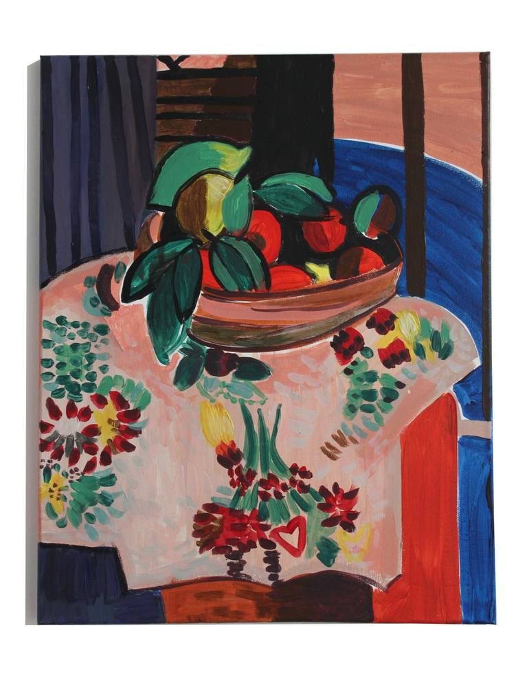 "Table with Fruit" is a vibrant acrylic painting on canvas that brings a touch of joyful color to any room. Inspired by the masters of color, this piece depicts a still life of fruit within a cozy home interior. The artist's love for bright, happy colors shines through in every brushstroke. The art...