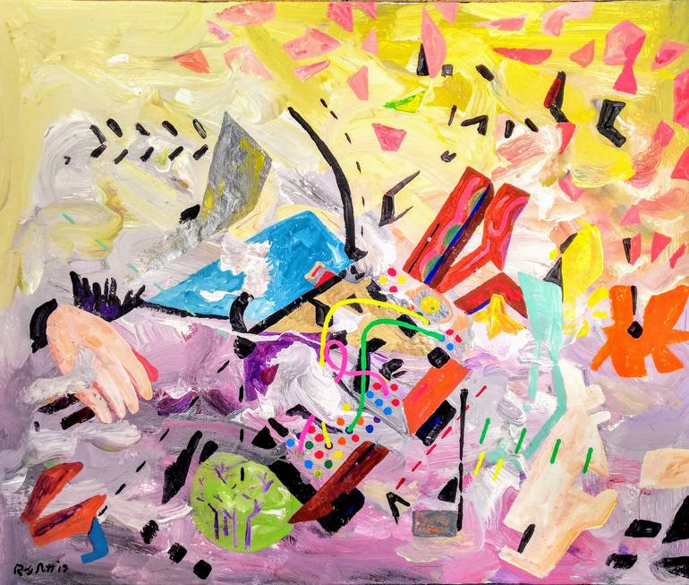 I've been making abstract art for most of my life, paintings, drawings, collage, mixed media and abstract audio compositions and poetry. At some point, the world broke into particles. I realized that matter was interchangeable. Everything is significant, in that, it is part of everything else. Lately, I’ve been exploring abstract narrative paintings with brightly colored tempera and latex and collaborative audio albums including piano, bass, cello, guitar, horns, Orba, ambient sounds, voice, and more. Technically, I start with many sketches, select a few to draw on canvas, and then I start painting. I follow the story where it leads, interactively; gradually a narrative emerges. I moved to North Carolina in 2018 (where I am a member of the Orange County Artists Guild, Carrboro), after having lived in Miami for 33 years (where I was a frequent participant in the Listening Club, Audiotheque @ ArtCenter, Miami Beach). Originally from the Chicago area, I was a founding member of the experimental art rock band Merz Pix. Private collectors across the US and the globe (France, the UK, the Netherlands, Tasmania, Japan) have acquired my work. [8/02/2025]