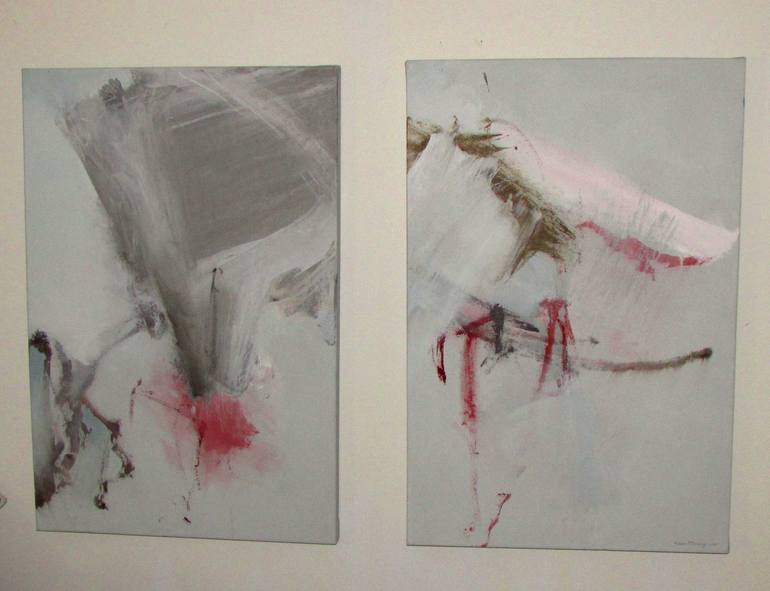 An installation shot of a special painting-diptych. What's missing in the space between the two images? I think this is one of the fascinating things about this pair.
