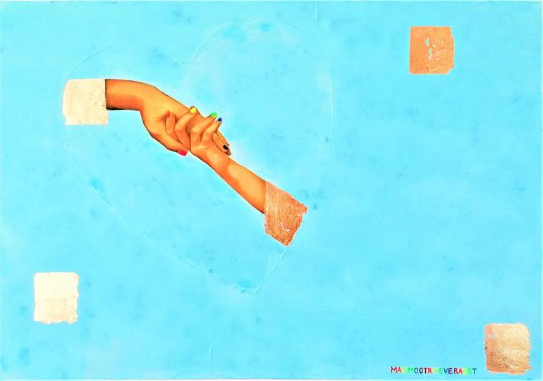 This work celebrates inclusivity and freedom of choice. The choice of being who you are, and choosing how you want to live your life. The hands (Oil paint) are holding and the nail polish is in the colors of the Rainbow Flag, as is the signature at the bottom of this work. The background is light...