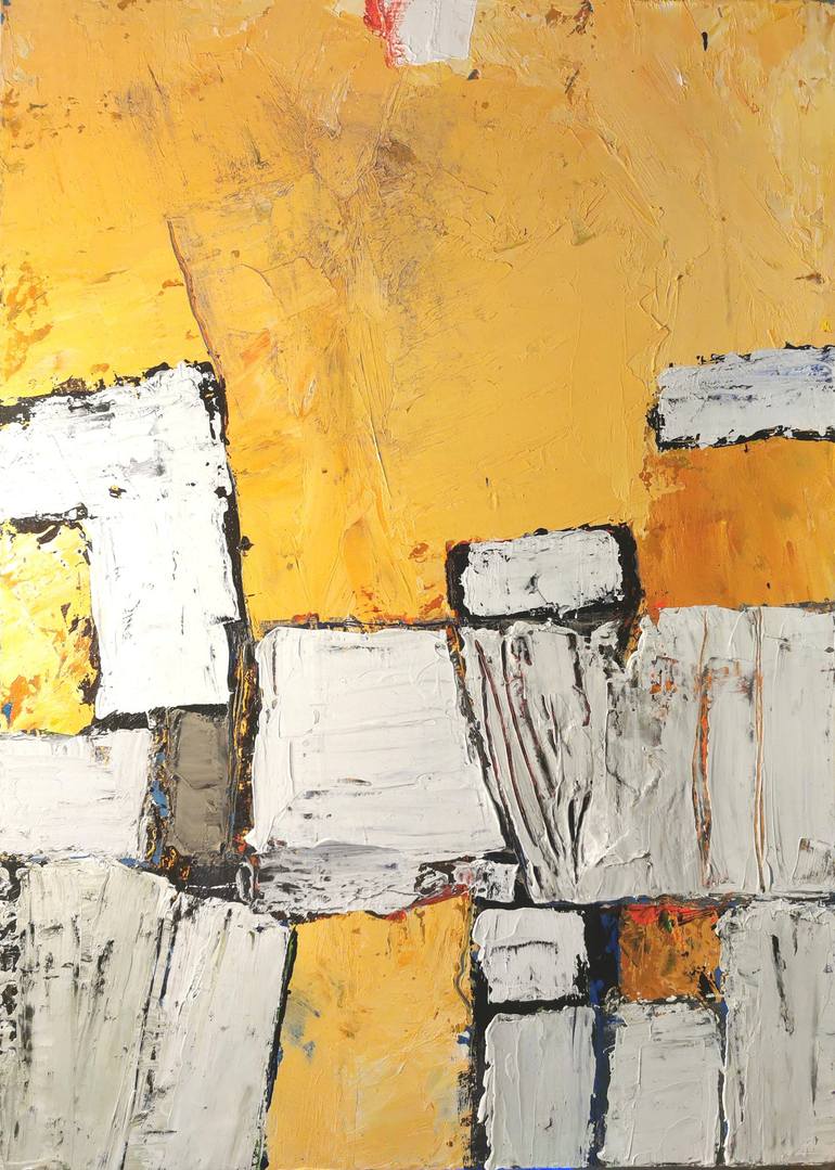 A creation where the constructive and the spontaneous gesture combine to find a harmony of proportions and colors. This painting made on wood panel does not require any frame and is ready to hang.