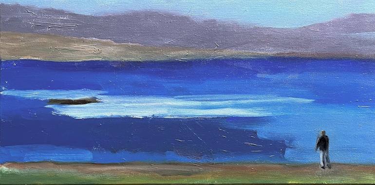 This painting is the result of a day spent on the California coast on New Years Day. The vista was spectacular, and the scale of the figure shows the expanse of the vista. I hope this transports you to a beautiful place where you find peace.