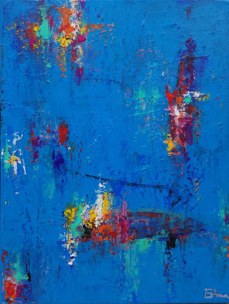 Through my art I want to bring more awareness, to inspire and to transpose the viewer into another world, a non-conceptual one, a world in which to feel through visualization, to escape from the so-called real world. I want to reach his soul, to break the created personality, to make the viewer himself, without any superimposed mask. My inspiration comes the moment I start creating and I am intuitively carried away by the unknown. “Inspiration exists, but it has to find you working.”, like Picasso was saying - I find it very true. I never know what will happen in the end. I choose my colors intuitively and I think it is very important to be authentic and to express ourselves as freely as possible. Nature inspires me a lot, but in a sense that cannot be defined or conceptualized. I don't lke the ideea of reproductions or reinterpretations and I think that through abstract art every creation is new, freshly manifested from consciousness and never the same. For me it is a kind of freedom, not a goal to be chased. If I had to think, speak, write, study the rules or exemplify the significance of each creation, I would not paint. I would get lost in a conceptual world that has nothing to do with my world.
