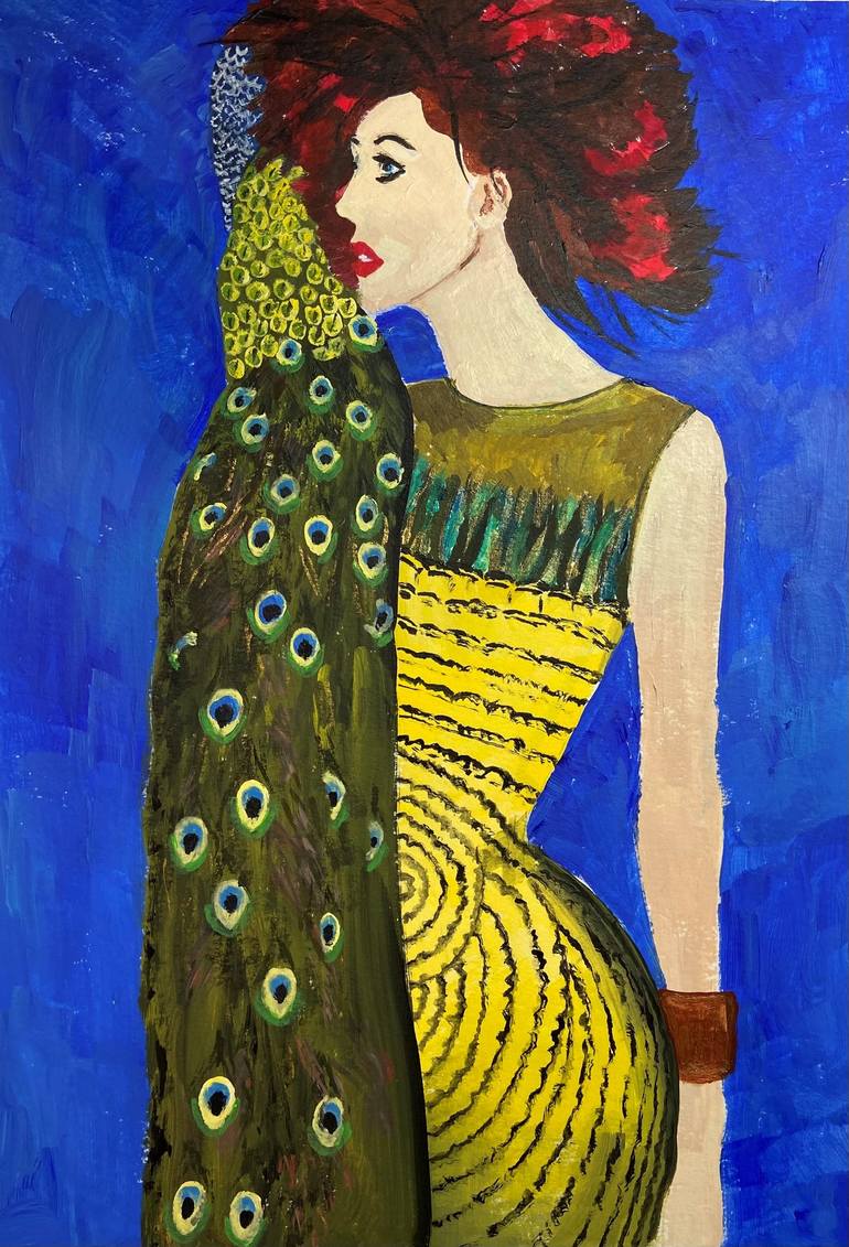 Lately I've been taking my inspiration for subject matter from images served up to me by Pinterest. In this one I'm not sure why the woman has a peacock on her shoulder, but maybe it's her daemon (as in His Dark Materials which is on TV at the moment). She's very elegant and colourful, so a peacock ...