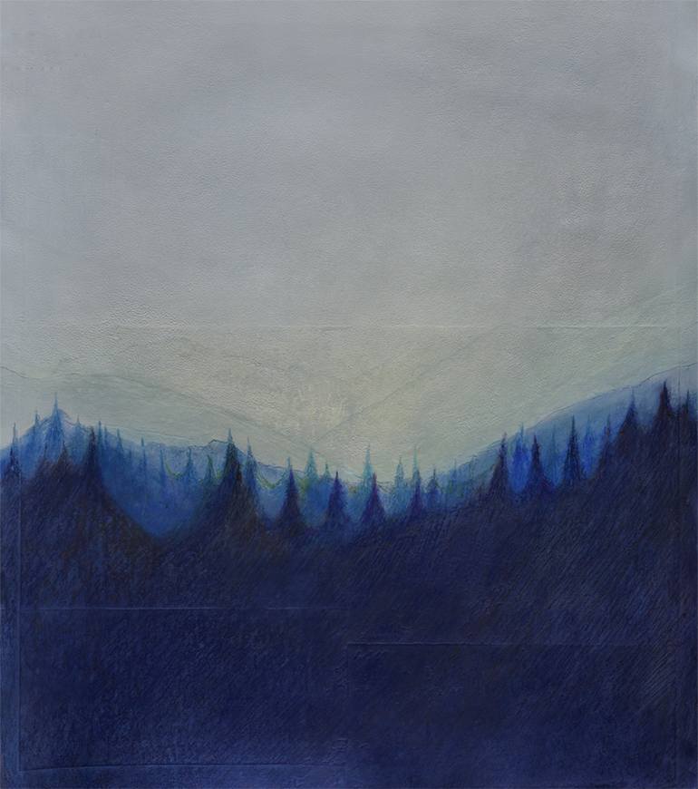 How to speak to the Mountain 3, digital collage and mixed media, 2017. The artwork is framed in light ash (a very dense wood with a grain pattern) wood box type professional frames with the glass. 'Talking to the Mountains' are mixed media paintings from a group of 'How to speak to the Mountain'. T...