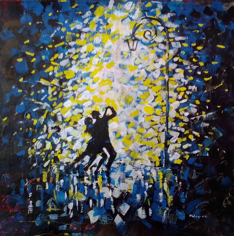 Mbongeni's work is inspired by music and dance, he captures motion, mood and the rhythm to engage the viewer into the beauty of his musical work. He considers his artwork as visual music and expresses his feelings musically on piece of canvas singing his songs with a paintbrush. The body of his work is largely figures, evolving from abstract images to recognisable elements using vibrant colours, texture and 3D effects.