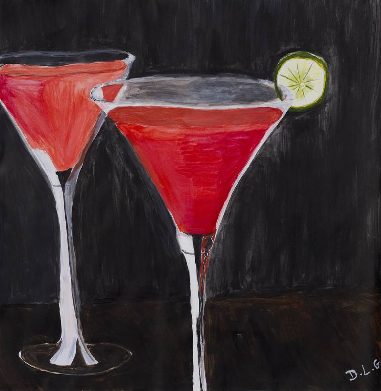 Acrylic and Watercolour on Paper Cosmopolitan Cocktails served in an old Irish Tavern