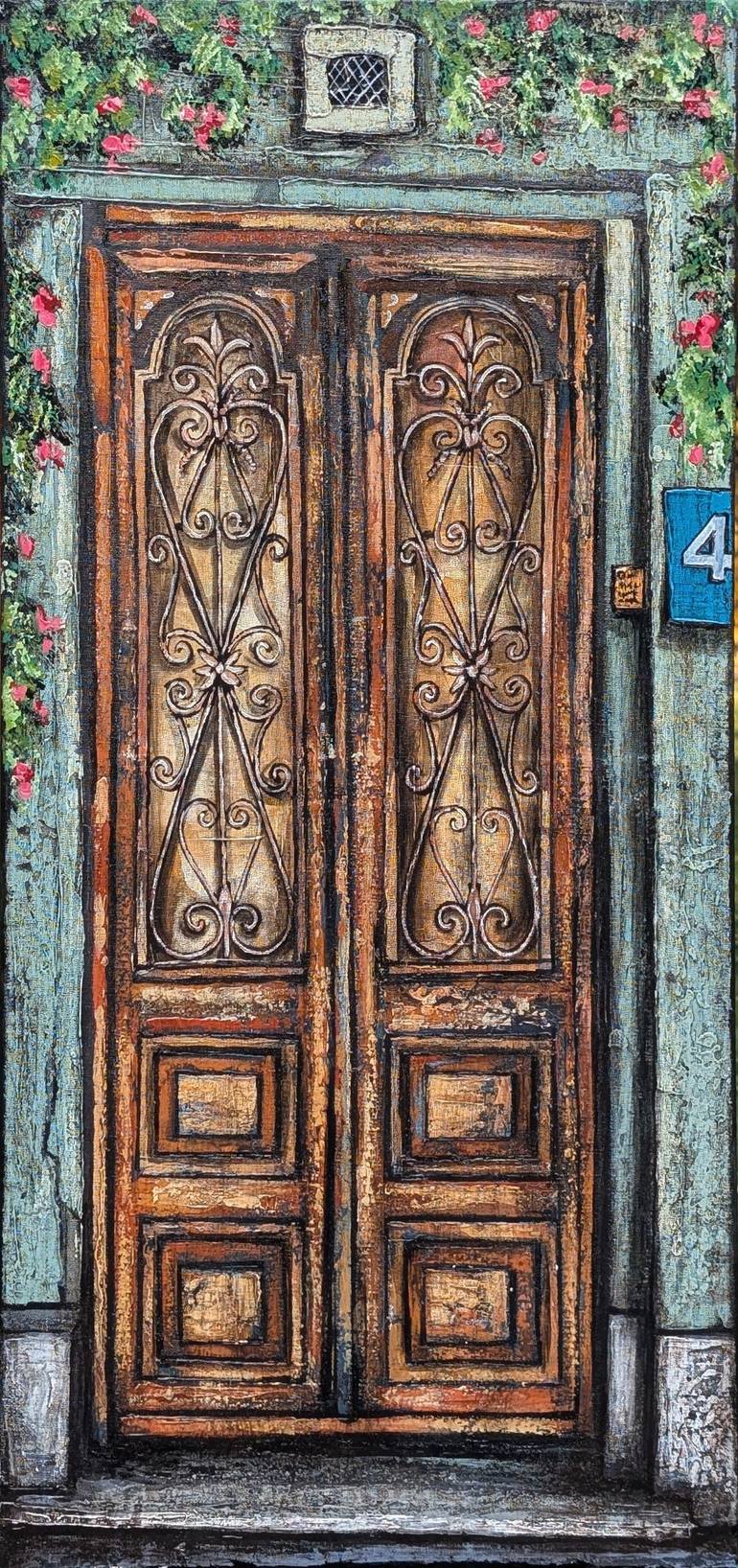 This painting captures the rustic charm of an old door nestled in the heart of a Tbilisi street. The door, weathered by time, tells a story of generations past, with peeling paint, intricate carvings, and ironwork that reflects the rich cultural heritage of Georgia. Surrounding the door are textured...