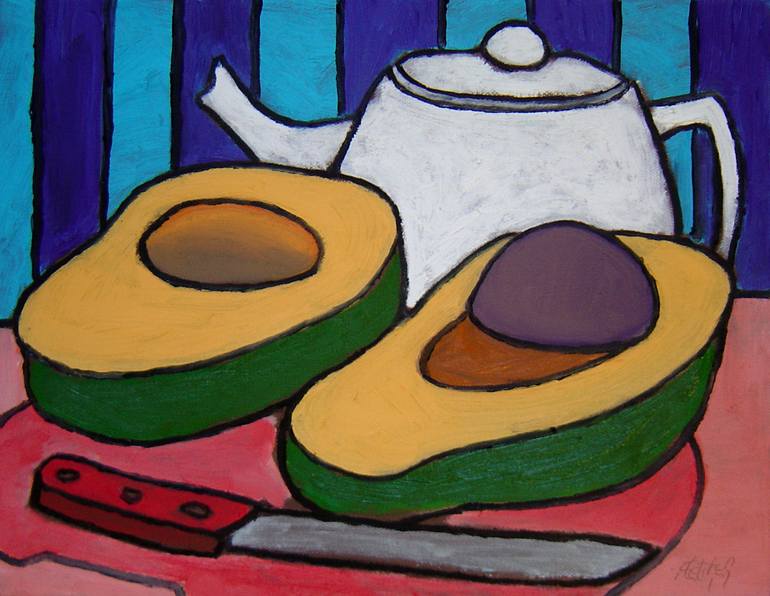 "Every day I have lunch with friends in the studio. Our time together is filled with good food, tea and pleasant conversation. The colors I have chosen to work with in this series of paintings are cheerful, joyful and filled with the energy that I am filled with when I am surrounded by these special...