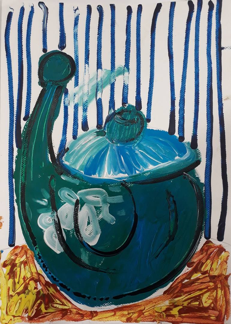 This work I painted from my feelings at that time. I let my ideas, imagination, and tools come to hand. worked together I don't plan my work. Release as much freedom as possible. It is a work from the subconscious mind. It's like an adventurous journey towards the answer that lies within your heart ...