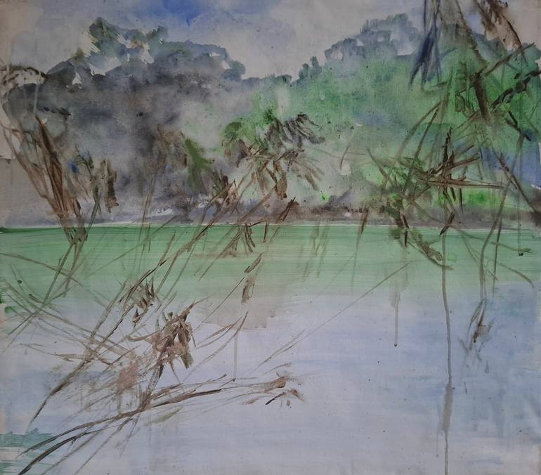 The work was inspired by my travels to Central-Java in Indonesia. There are in the mountains of the Dieng Plateau colourfull lakes.
