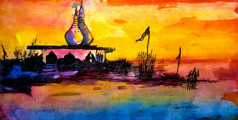 This is the end result of my first attempt at the pouring technique. Although it was fun and messy, it was a bit frustrating and the colours are not as vibrant as I'd like. My camera added a kick of vibrancy to the posted pic. TEMPLE IN THE SEA A well known site of worship for Hindus and a tourist ...