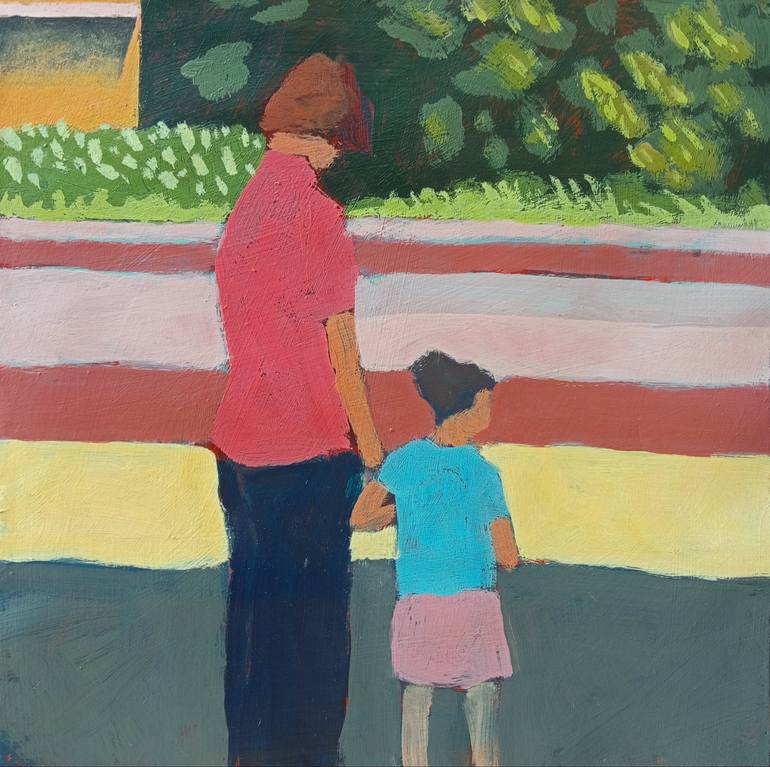 Grandmother and granddaughter waiting for a train at Ponticino station, in Tuscany. The image wants to convey the essence and the feeling of a peaceful and carefree moment. Rigid/flexible cardboard, one millimeter thick, ready to be framed.