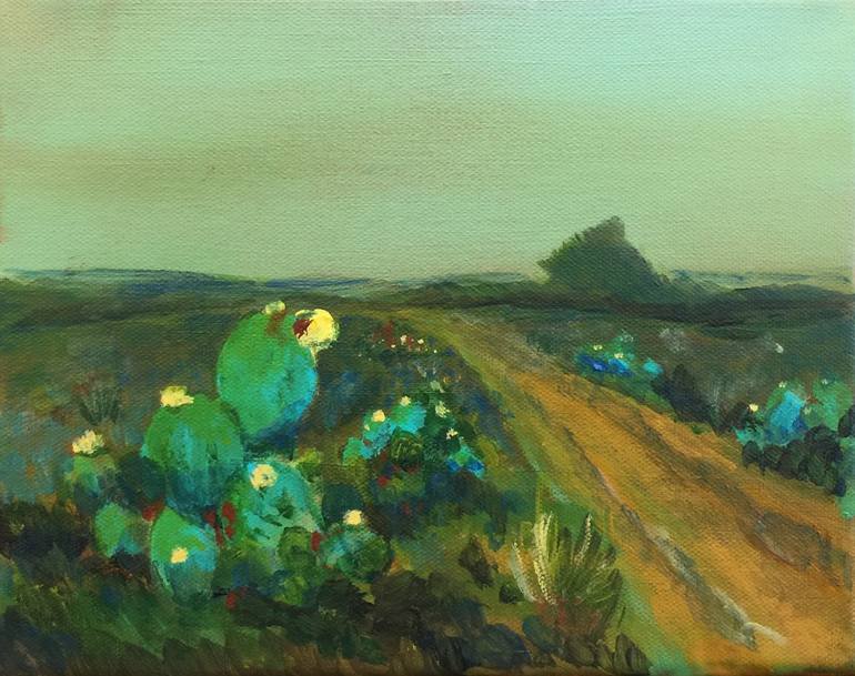 I grew up in Texas and love the Texas landscape. Although I live and work in Houston I always enjoy my visits to the south Texas coastal plain near Corpus Christie. This is a simple little painting depicting that area of the world with a winding road and cactus.