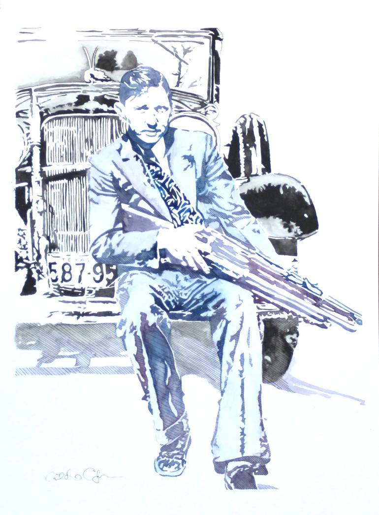 This is part of a 3 piece set that spotlights the famed criminals: Bonnie and Clyde. I tried out a little different technique with this piece, incorporating both watercolor, and some shading with pen. This was a really fun piece to make and I love the way it turned out and how it looks when paired w...