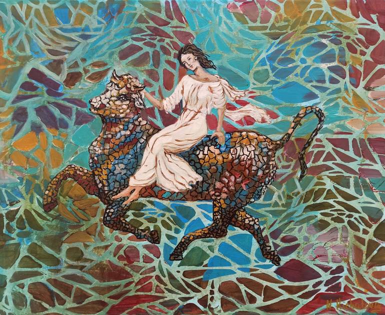 Title: "The Abduction of Europa" Dimensions: 50 x 40 cm Medium: Acrylic on canvas Year: 2024 The Abduction of Europa is a contemporary interpretation of the ancient myth, rendered in expressive textures and muted, earthy tones. This piece captures the tension between power and vulnerability, myster...