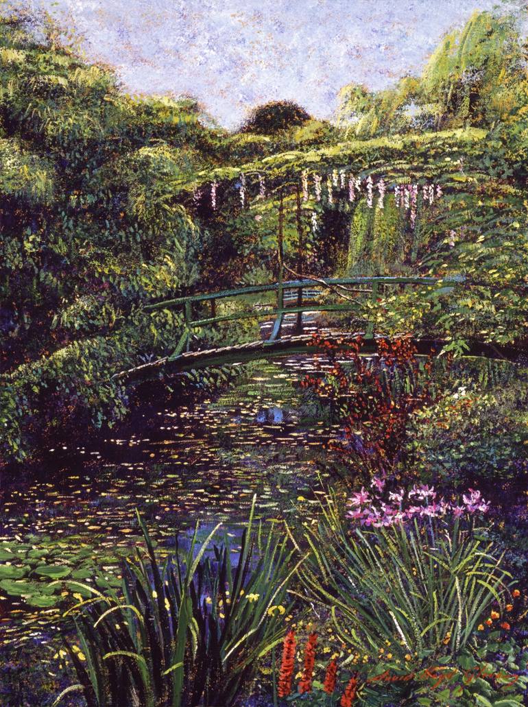 Gardens Painting - The Artists Garden Giverny by David Lloyd Glover Edit Image Delete Image Upload New Image PREV | NEXT 0 0 0 The Artists Garden GivernyThe famous water gardens of Claude Monet in Giverny France. The Japanese footbridge crosses over the water lily pond. Impressionist painting oil ...