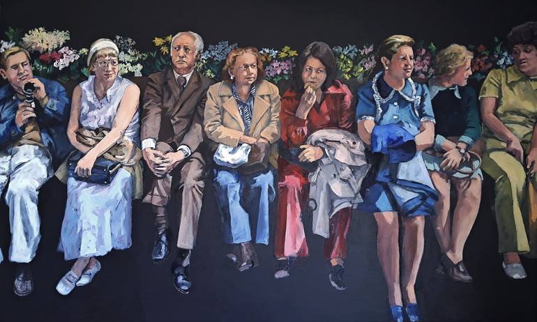 After studying at the University of Fine Arts in Barcelona, she started a long journey experimenting in decorative painting, preciosism and poster design resulting two decades later in paintings on black backgrounds with sober and disturbing figures. Lola Sandoval covers photographic archives of social groups she recomposes blurring all points of reference. The roles are inverted, the generations confuse, the goals are ignored and the memory value of the document disappears. From that emerge strange portraits or ambiguous group scenes, deprived from any space, time, cultural or sociological referent. The subjects then appear frozen and reduced to a setting consecrating by strangeness their peculiarity at the cost of their individuality.